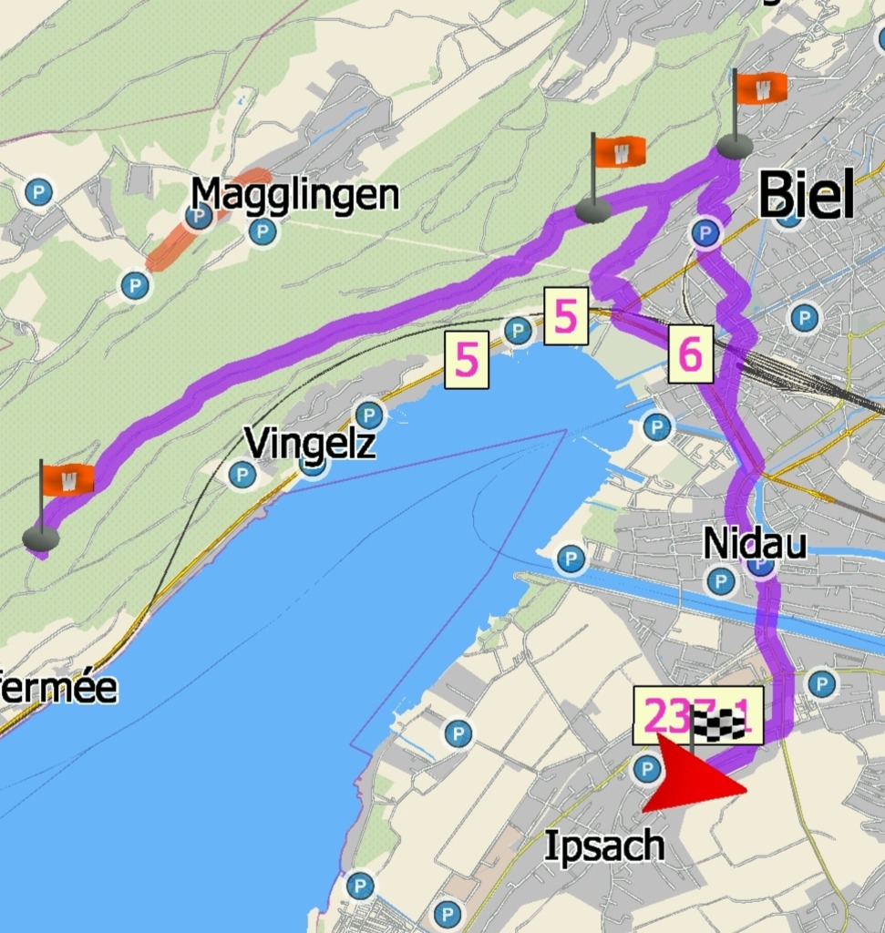 Richtung Le Landeron alles auf Nebentrassen.In Erlach war ich so Müde, dass ich auf dem Kürzesten Weg nach hause gefahren bin.