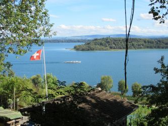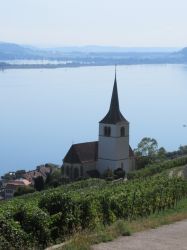Der Rebberg ist am schönsten oberhalb Twann, mit Ausblick auf die Insel und die Kirche Ligerz.