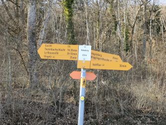 Ich fahre zurück und hoch nach Schernelz. Am Restaurant vorbei führt ein Wanderweg Richtung Neuenstadt. Laut Auskunft des Wirtes kann man den bis Neuenstadt auch mit dem Velo fahren.